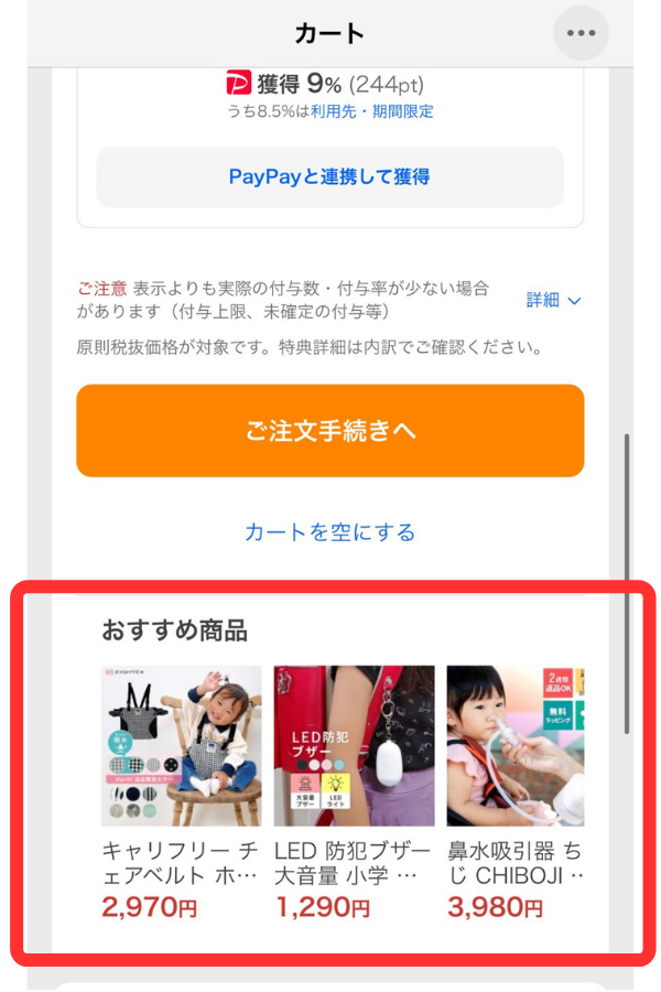 Yahoo!ショッピングでは、カートページに表示するおすすめ商品を商品ごとに設定できます。